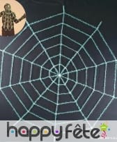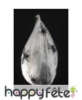 De couleur blanc, ce rideau transparent est imprimé d'un motif représentant une toile d'araignée.