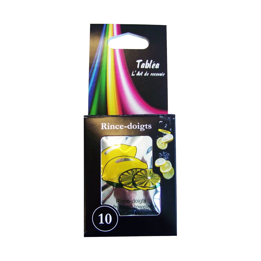 Plus besoin du classique récipient dédié à cet effet, ces rince-doigts se présentent sous la forme pratique d'essuie-mains parfumées au citron.