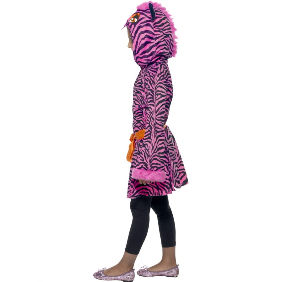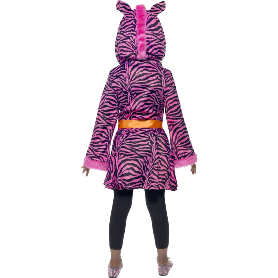C'est connu, tous les petits enfants adorent les animaux de la forêt! Et surtout ceux de la savane africaine car on ne les rencontre pas tous les jours, c'est peu dire! Mais avec cette jolie robe en zèbre pour petite fille, on pourrait s'y croire. C'est une veste à capuche avec de la fausse fourrure d'animal en rayures de zèbres rose et noir, des petites fourrures au niveau des poignets et des oreilles et des petits yeux de zèbre sur la capuche, tout cela assorti à une jolie ceinture orange pour le style "arc en ciel". Vous mettrez à votre fille des petites ballerines roses avec ce costume et vous pourrez être sûre qu'elle sera la plus jolie. Idéale pour les enfants de 7 à 9ans (taille M), 10 à 12 ans (taille L), cette tenue doit être lavée en nettoyage à sec uniquement.