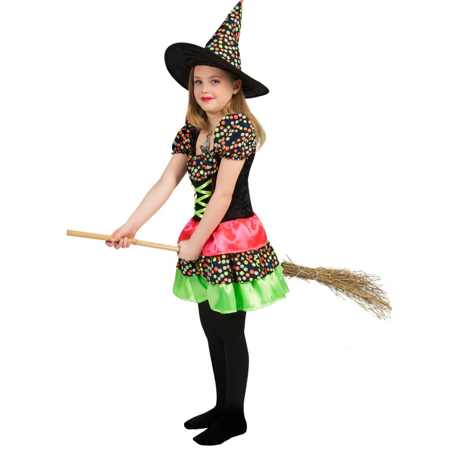 Le soir d'Halloween, votre fillette fera peur à ses camarades et à toutes les personnes qu'elle croisera avec cette robe à pois multicolore de sorcière pour fille.