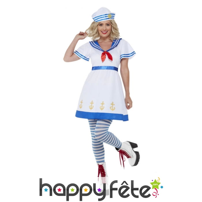 Les amoureuses de l'uniforme sans donneront à coeur joie, avec la robe blanche courte de marin pour femme.