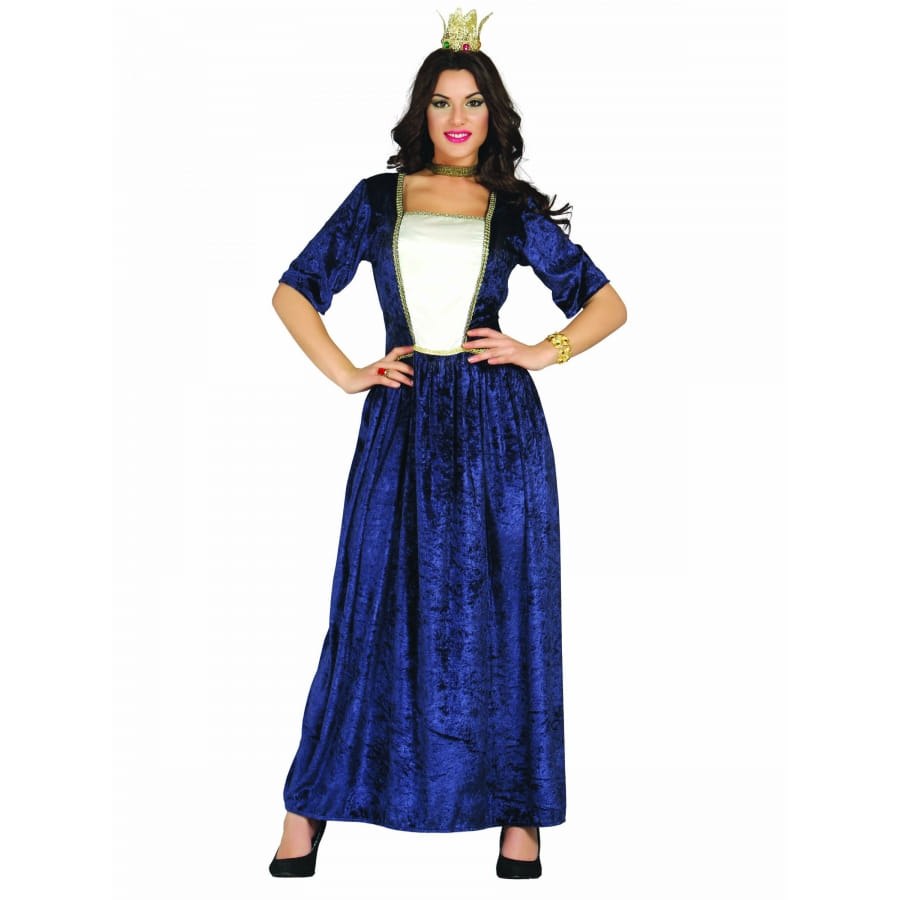 Replonger dans le moyen âge grâce à la longue robe bleue médiévale effet velours pour femme.