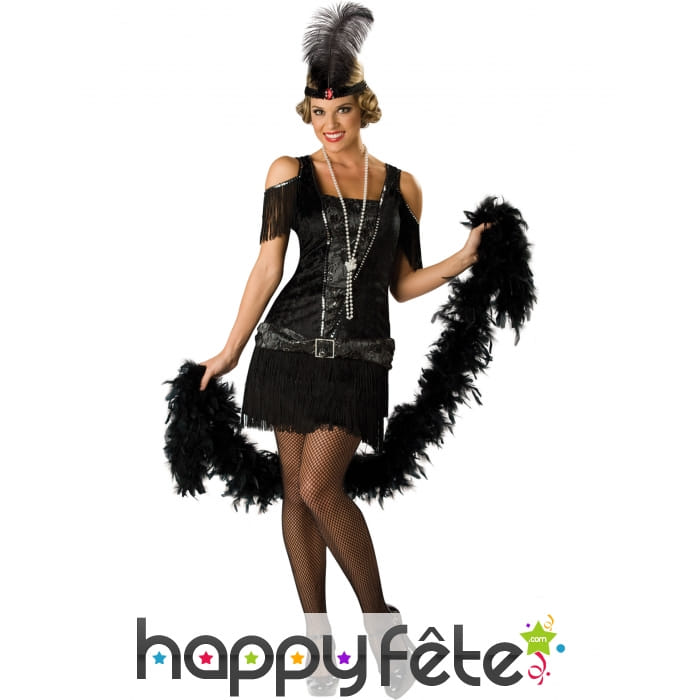La robe charleston noire courte modèle prémium est destinée aux femmes.