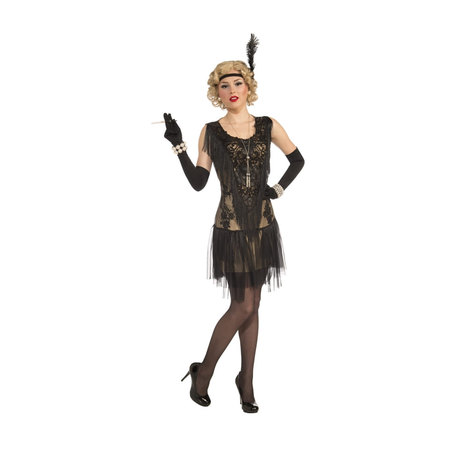 Plongez dans l'ambiance chic des années 20 et dansez le Charleston avec cette jolie robe Charleston noire transparente que vous voyez ici ! Cette robe charleston courte et sans manches a été confectionnée dans un tissu noir transparent, avec une doublure beige. Elle est spécialement dédiée à la gente féminine adulte. Son haut est orné de longues franges et de motifs floraux. Son bas est en voile noir. Rétro, légère et sexy, cette robe mettra à votre disposition un charme inégalé et une beauté incomparable le temps d'une soirée sur le thème "Cabaret" ou "Années 20". Et pour souligner encore plus votre féminité et être tout à fait dans le style Charleston, complétez la robe avec nos panoplies d'accessoires (non compris) : coiffe, gants, perruque, porte cigarette, collants, etc, à retrouver dans la section accessoires du site.