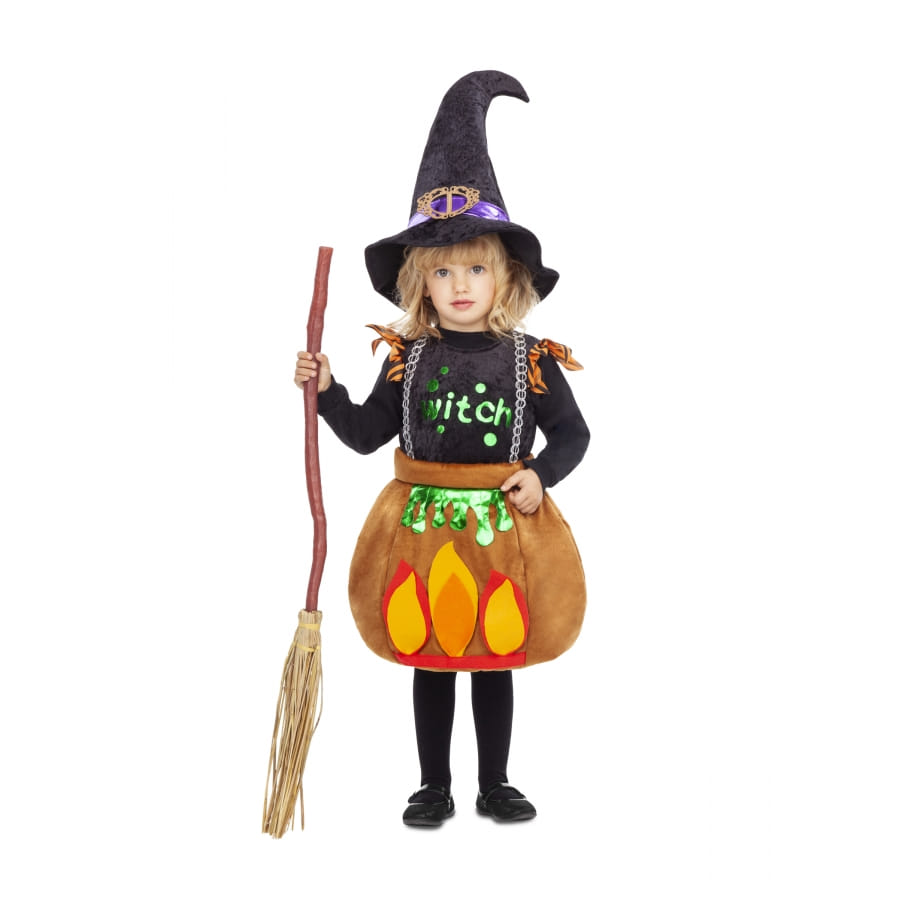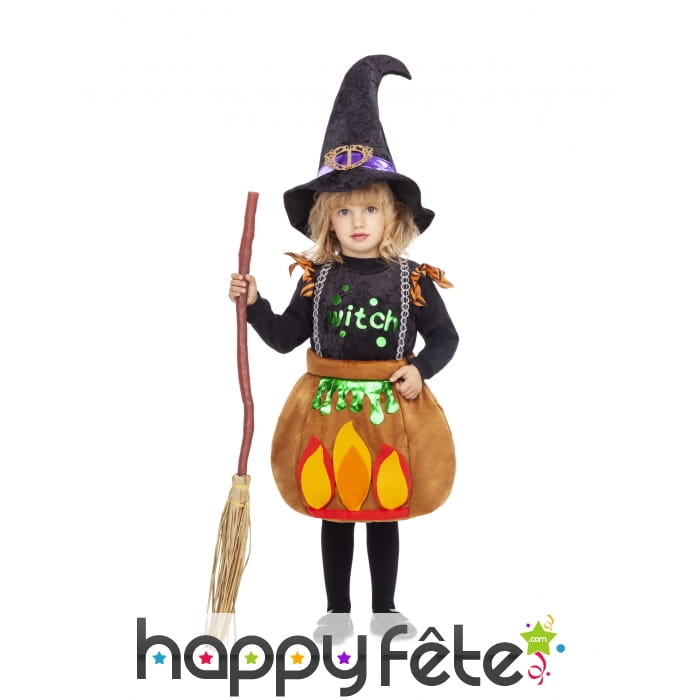 Avec la robe chaudron de petite sorcière pour enfant, votre fillette se fera toute mignonne pour la prochaine chasse aux bonbons d'Halloween.