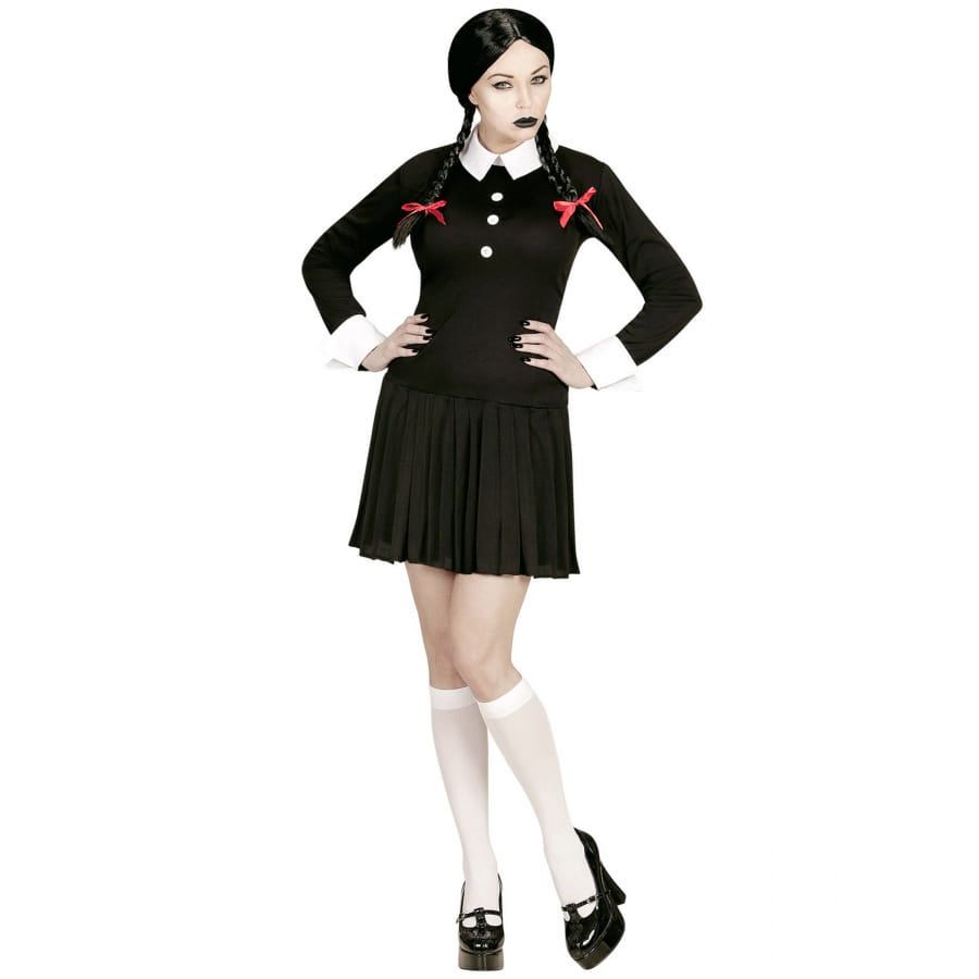 La robe courte de Mercredi Addams pour adulte destinée aux femmes est de couleur noir uni.