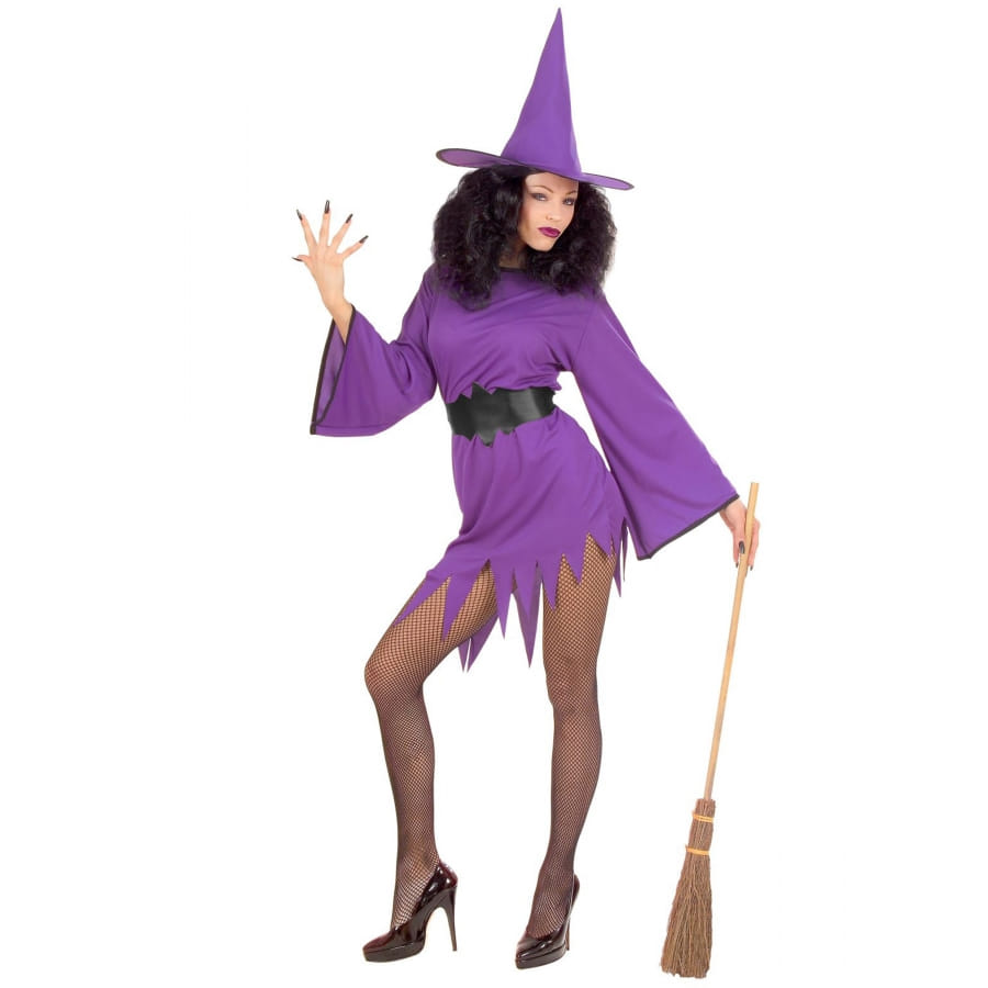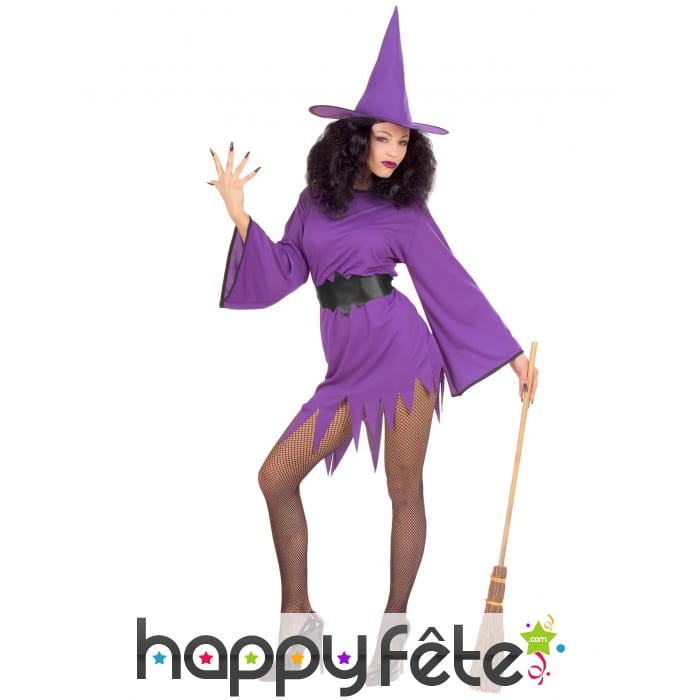 Mettez-en plein la vue avec un look sexy et glamour le soir d'Halloween, avec cette robe courte de sorcière violette sexy pour femme.