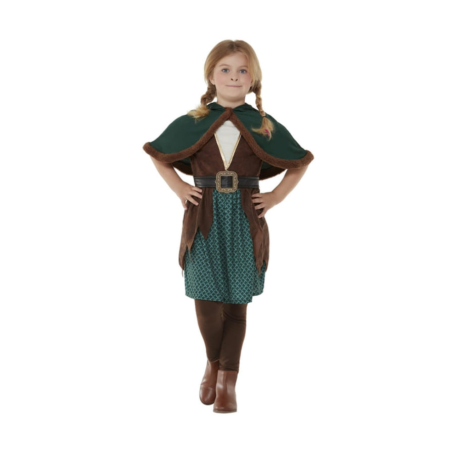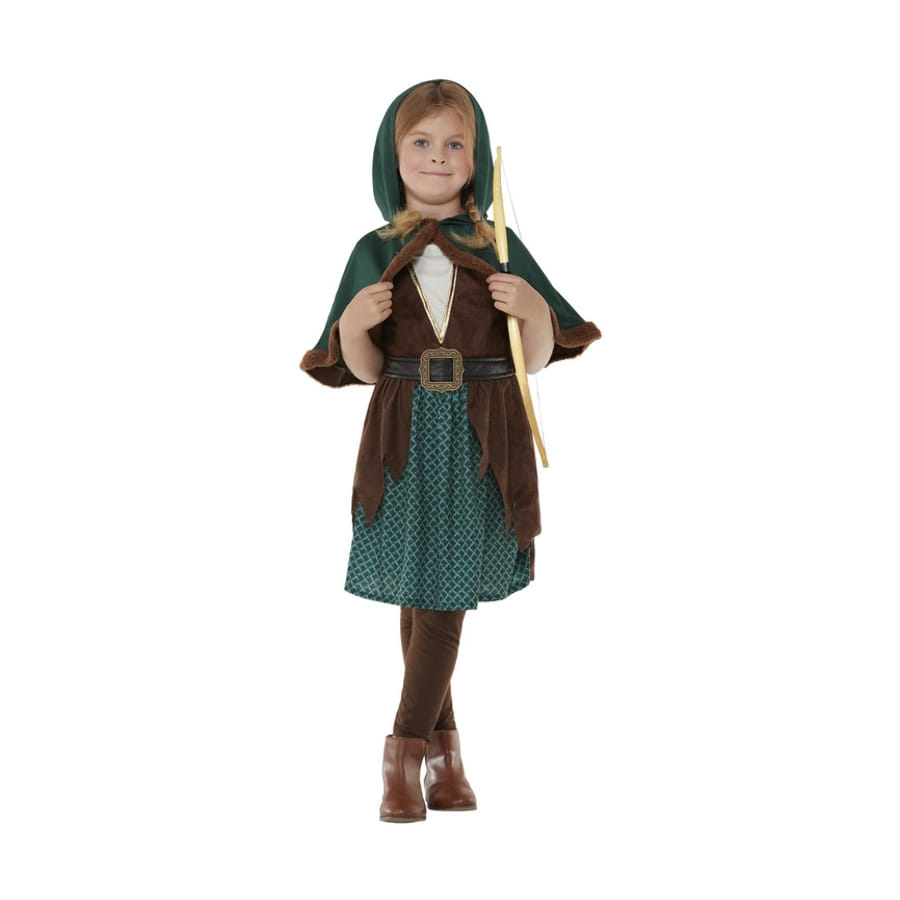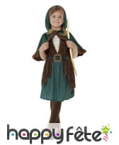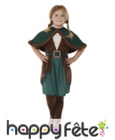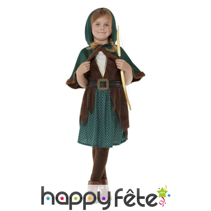 Faites briller les petits yeux d'une amatrice de films de cape et d'épée avec la robe d'archer marron et vert avec capeline, fille.