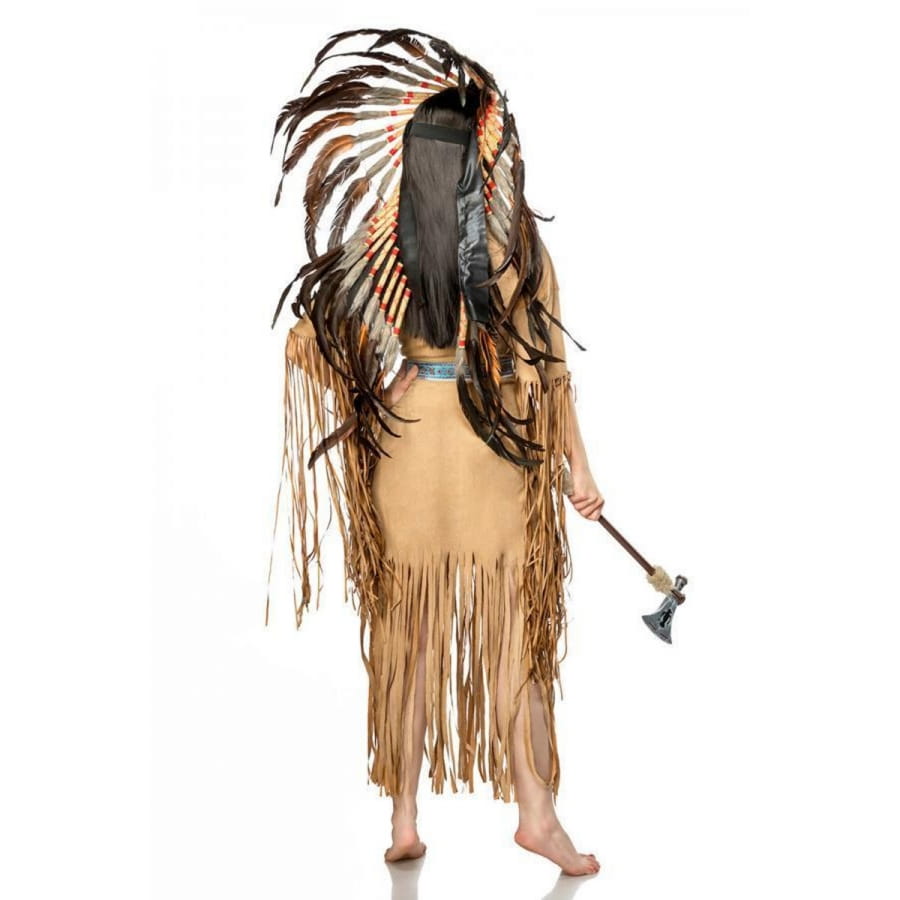 Pour une fête sur le thème de l'Amérique, découvrez cette Robe d'indienne marron à franges avec coiffe, luxe.