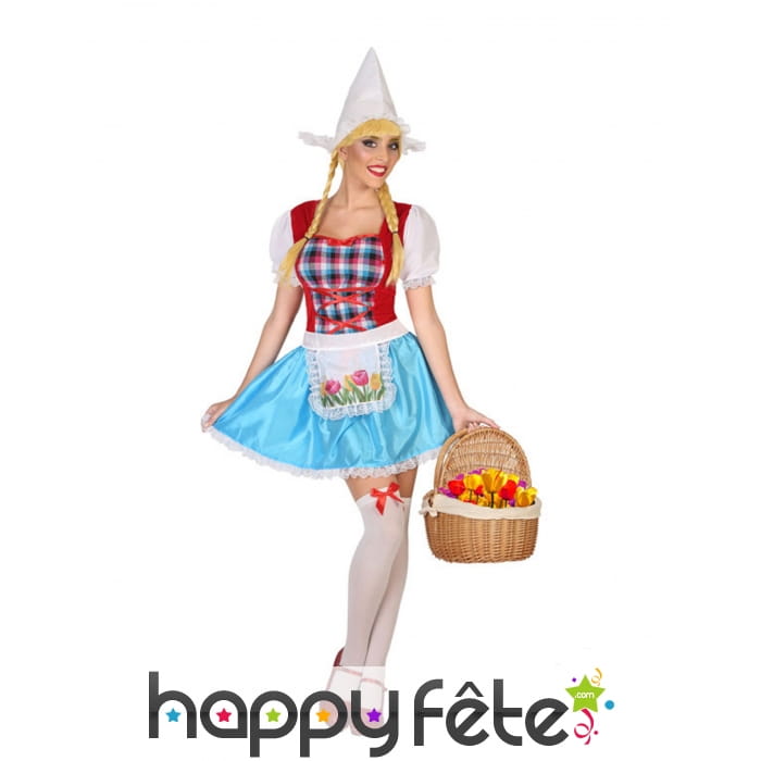 Préparez pour une fête de la bière inoubliable, avec la robe de bavaroise pour femme, rouge et bleu.