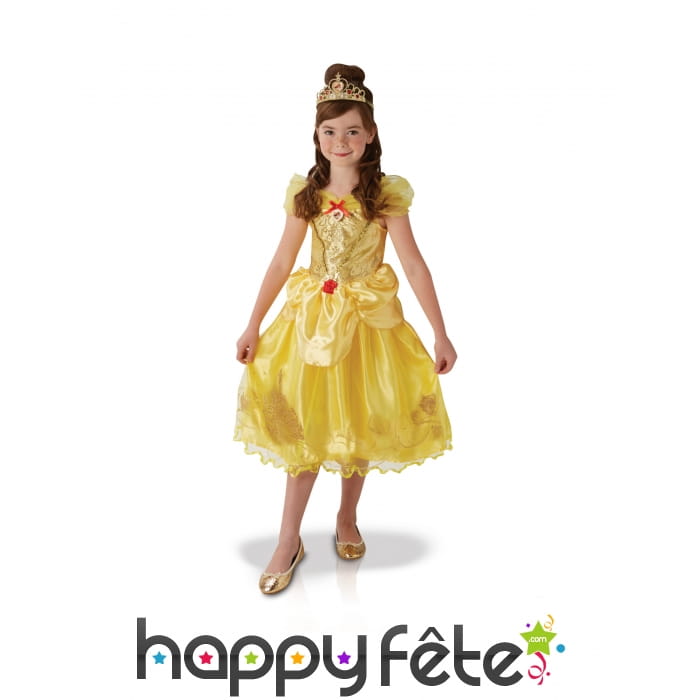 Plongez votre fillette dans le conte de fée qui occupe ses rêves, en lui offrant la robe de Belle avec tiare.