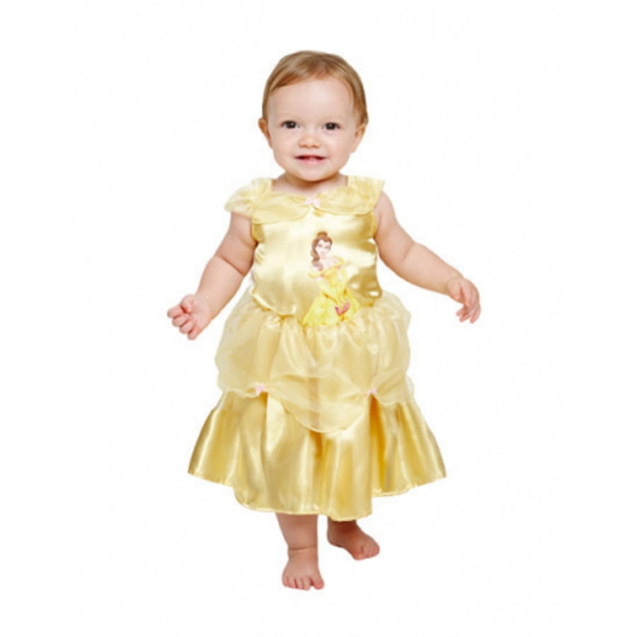 La robe de Belle pour bébé est faite à partir d'un tissu satiné.