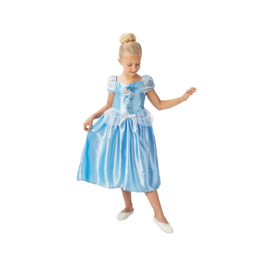 Le bal est pour ce soir et Cendrillon n'a toujours rien à se mettre. Pas de panique, la marraine la bonne fée du site happyfete lui a concocté une belle surprise. Les jeunes filles vont tomber d'admiration pour cette somptueuse robe de cendrillon pour petite fille. Revivez ce merveilleux conte de fée avec un modèle sous licence Disney. La robe est mi longue et présentée dans une magnifique couleur bleue satinée. Vous distinguerez un petit imprimé sur le devant et un ruban blanc en noeud à la taille. Les manches sont courtes et un surjupon en tulle a été intégré au vêtement. La robe est proposée pour les fillettes de 3 à 8 ans sous différentes tailles.