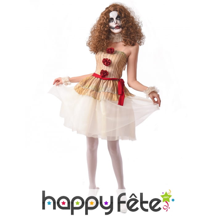 Créez la terreur autour de vous avec la robe de clown vintage élégante pour femme.