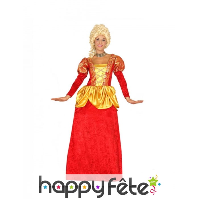Radieuse, gracieuse et glamour, vous serez certainement la plus belle de la soirée grâce à cette Robe de comtesse pour femme, rouge et dorée.