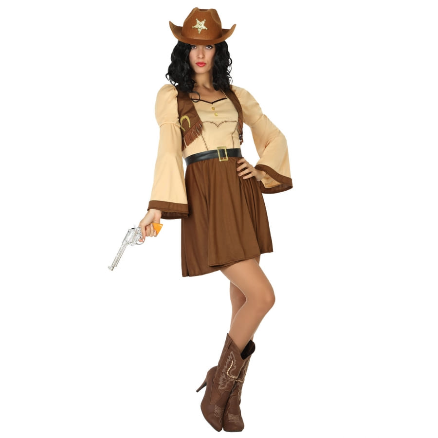 La robe de cowgirl marron beige est déguisement pour femme.