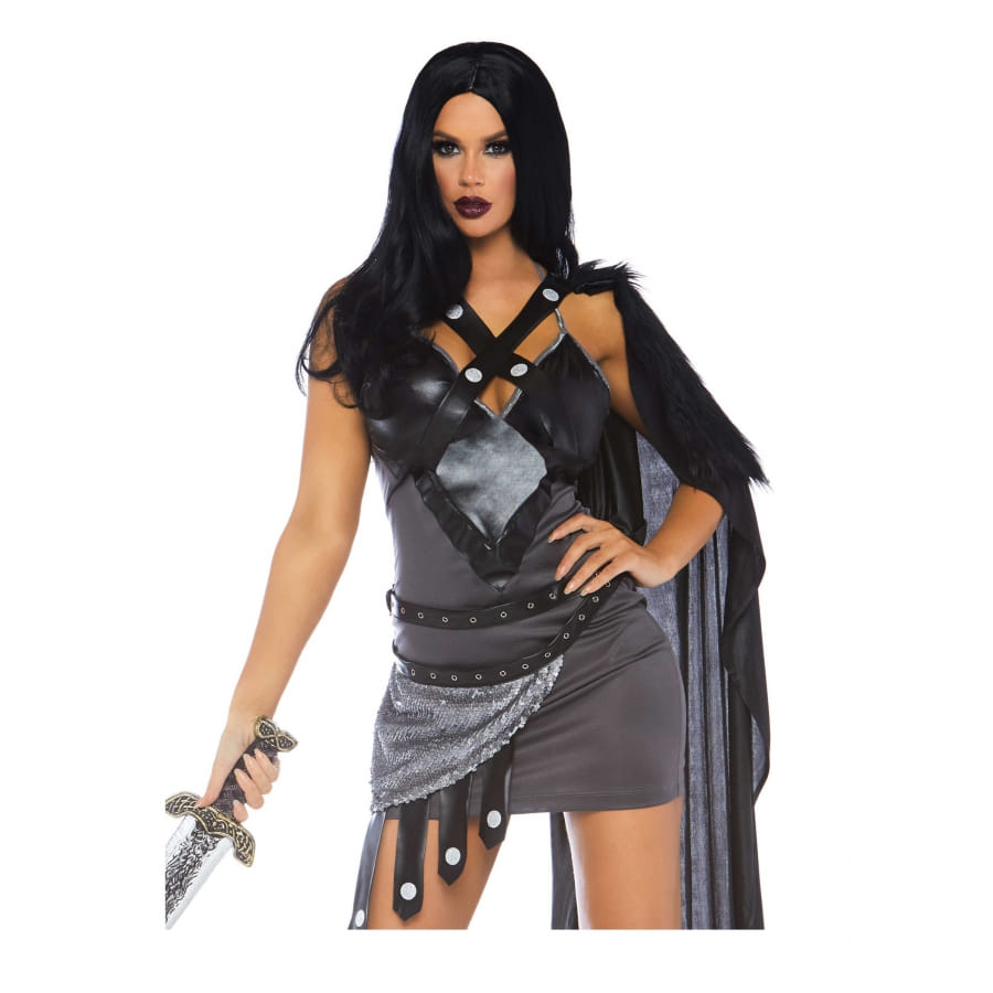 Incarnez une guerrière fatale dans cette Robe de guerrière du Moyen-Âge avec cape, femme.