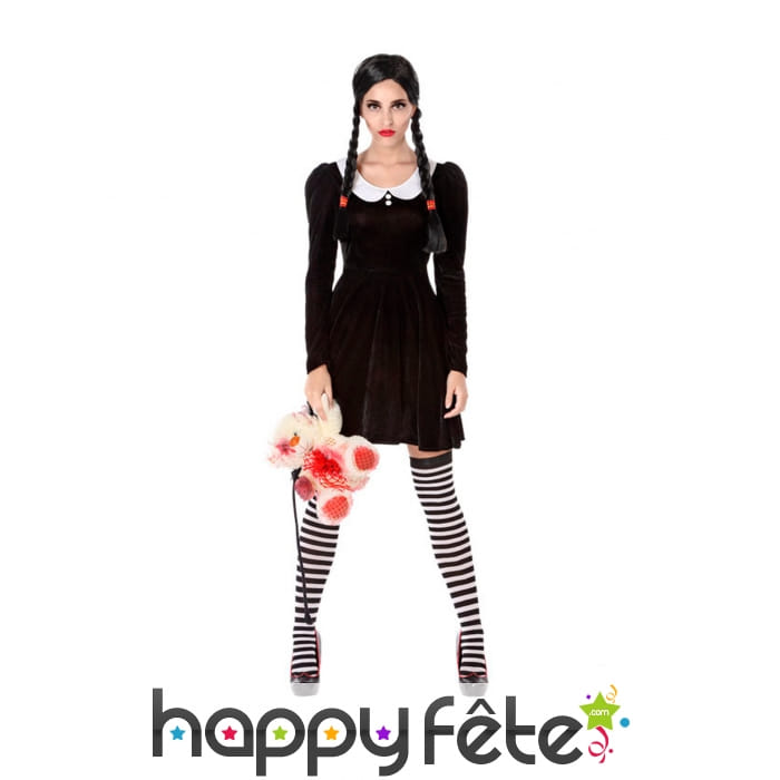 Pour le prochain Halloween, transformez-vous en une écolière pas comme les autres, en arborant cette robe de Mercredi Addams pour adulte.