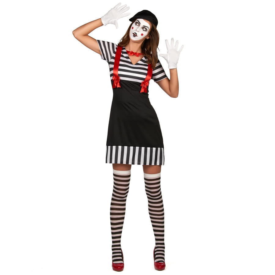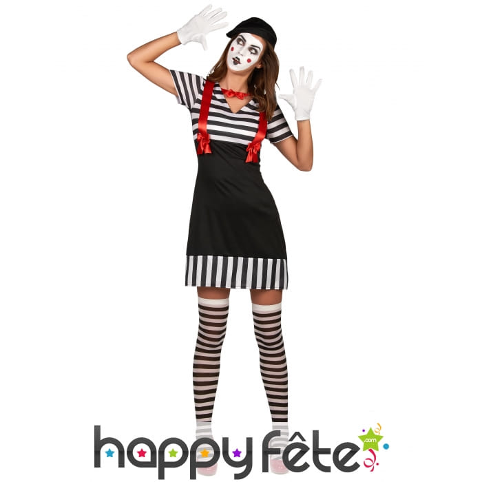 La robe de mime avec chapeau pour femme est un ensemble constitué de 2 pièces.