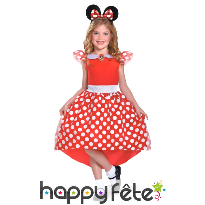 Et que serait une tenue de Minnie sans ses célèbres oreilles ? La robe est assortie d'un serre-tête surmonté d'oreilles de Minnie et d'un noeud rouge à pois blancs, pour que votre enfant se transforme totalement en sa souris préférée.