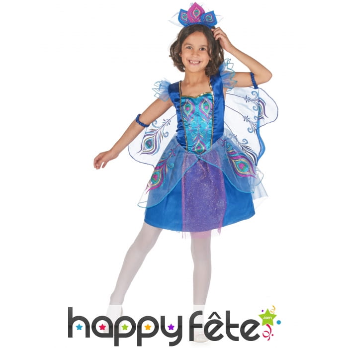 Profitez d'une soirée féerique ou les animaux sont à l'honneur, pour changer vote fille en son oiseau préféré, avec la robe de paon pailleté pour enfant.