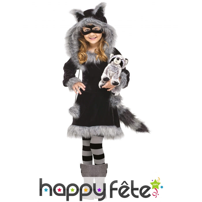 Votre enfant sortira du lot à l'occasion de la prochaine soirée déguisée, avec la robe de petit raton laveur pour fille, avec masque.