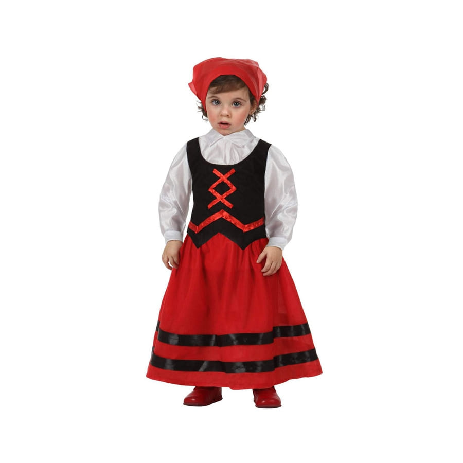Adorable est la petite bergère qui s'en va assister à la fête du village ! Une soirée à thème en vue pour votre petite fille chérie ? Appropriez-vous cette sublime robe de petite bergère noire et rouge d'antan. Le déguisement comporte un haut à manches longues fabriqué dans un tissu satiné, avec col de chemise fermé. Il est accompagné d'un faux gilet noir cousu sur lequel a été ajouté un faux laçage rouge. La fermeture s'effectue à l'aide de scratchs à l'arrière. Ce haut est complété par une longue jupe rouge élastique à la taille et ornée de liserés noirs sur le bas. Pour fignoler l'ensemble, retrouvez un bandana rouge destiné à recouvrir la tête.