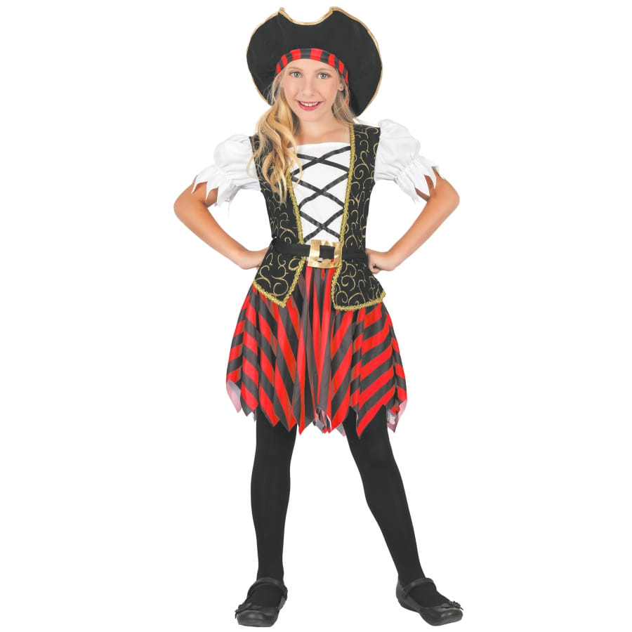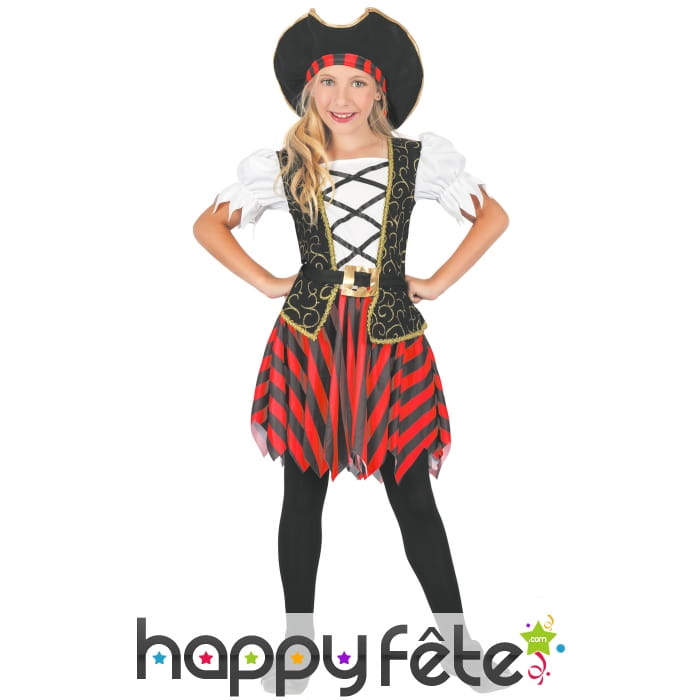 A cet effet, nous vous proposons la robe de petite pirate à rayures noires et rouges.