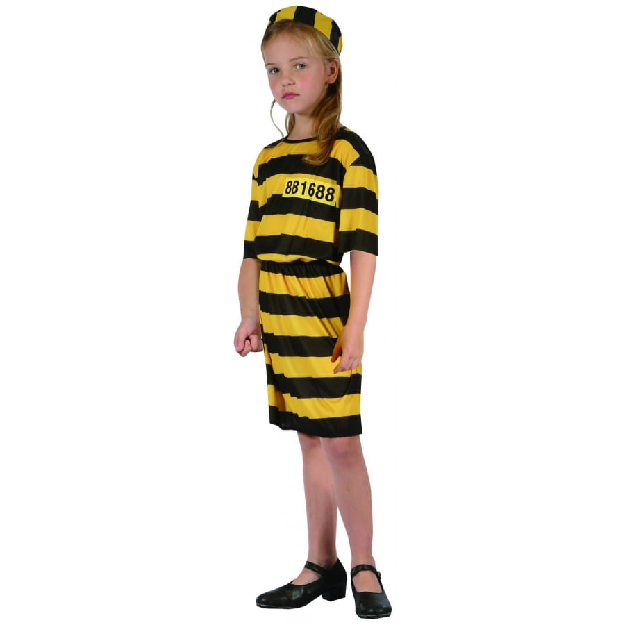 Votre fille sera la plus mignonne des petites prisonnières avec cette robe de petite prisonnière jaune et noire accompagnée d'un chapeau.