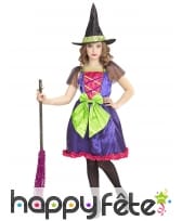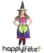 La robe de petite sorcière multicolore est la tenue idéale pour Halloween.