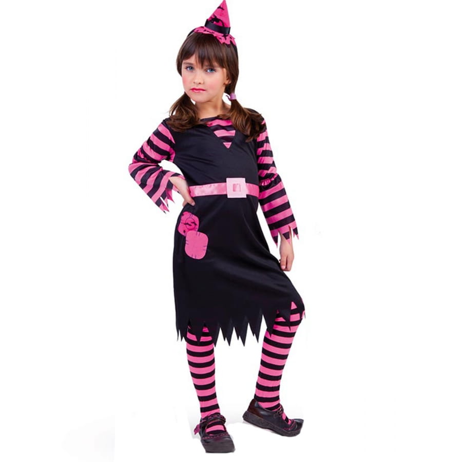 Faites de votre fille la plus jolie des sorcières, en lui offrant cette robe de petite sorcière rose et noire avec chapeau.