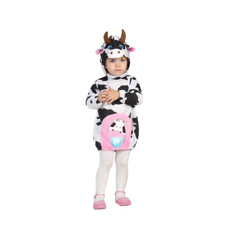 Afin que votre bambin n'attrape pas froid le soir du carnaval, proposez-lui cette jolie robe de petite vache pour bébé accompagnée d'un couvre-chef.