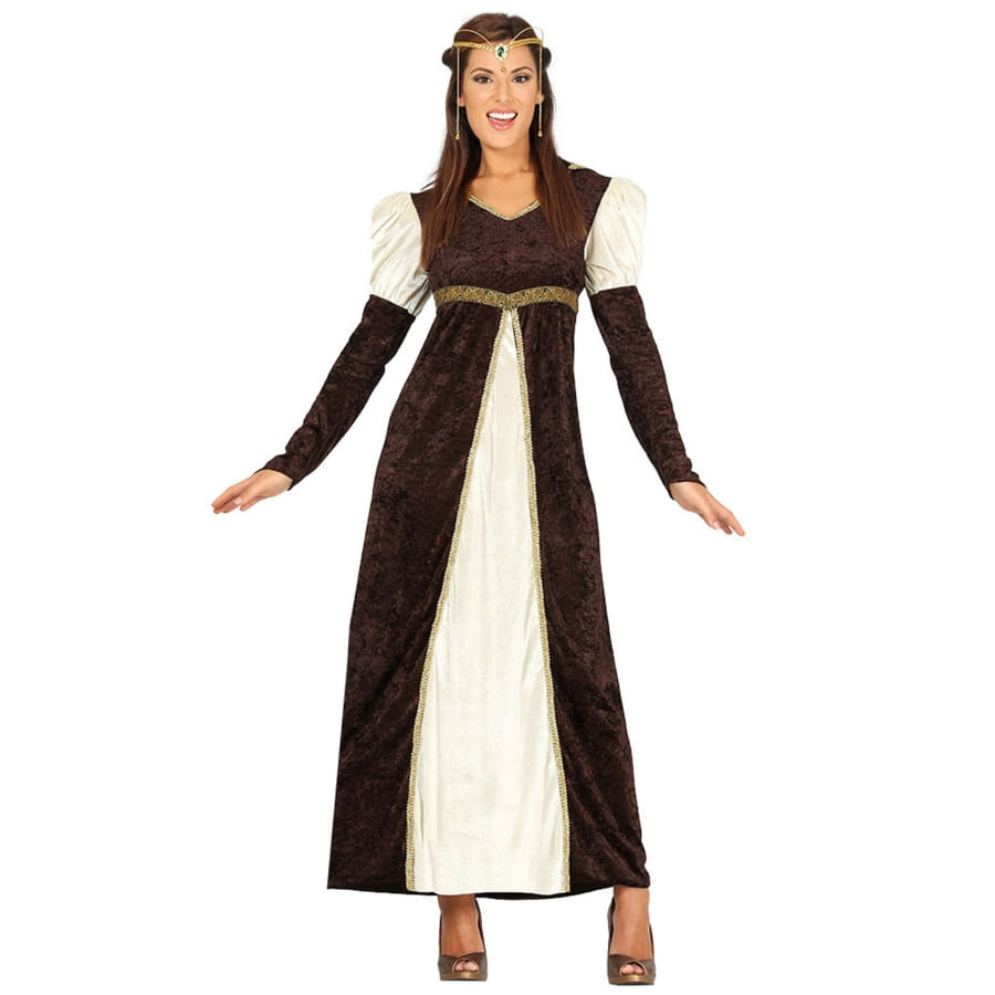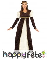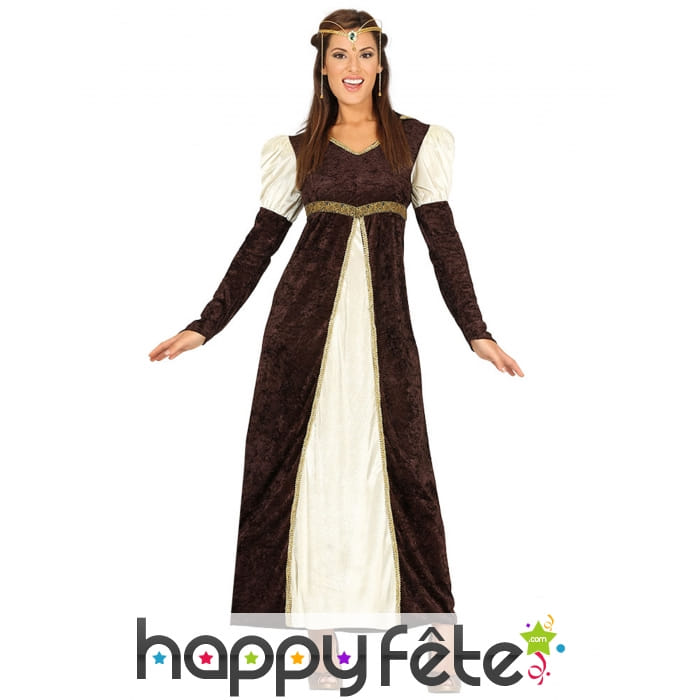 Soyez prête à faire un retour dans le passé, notamment à l'époque médiévale, avec cette robe de princesse Moyenâgeuse blanche et marron pour adulte.