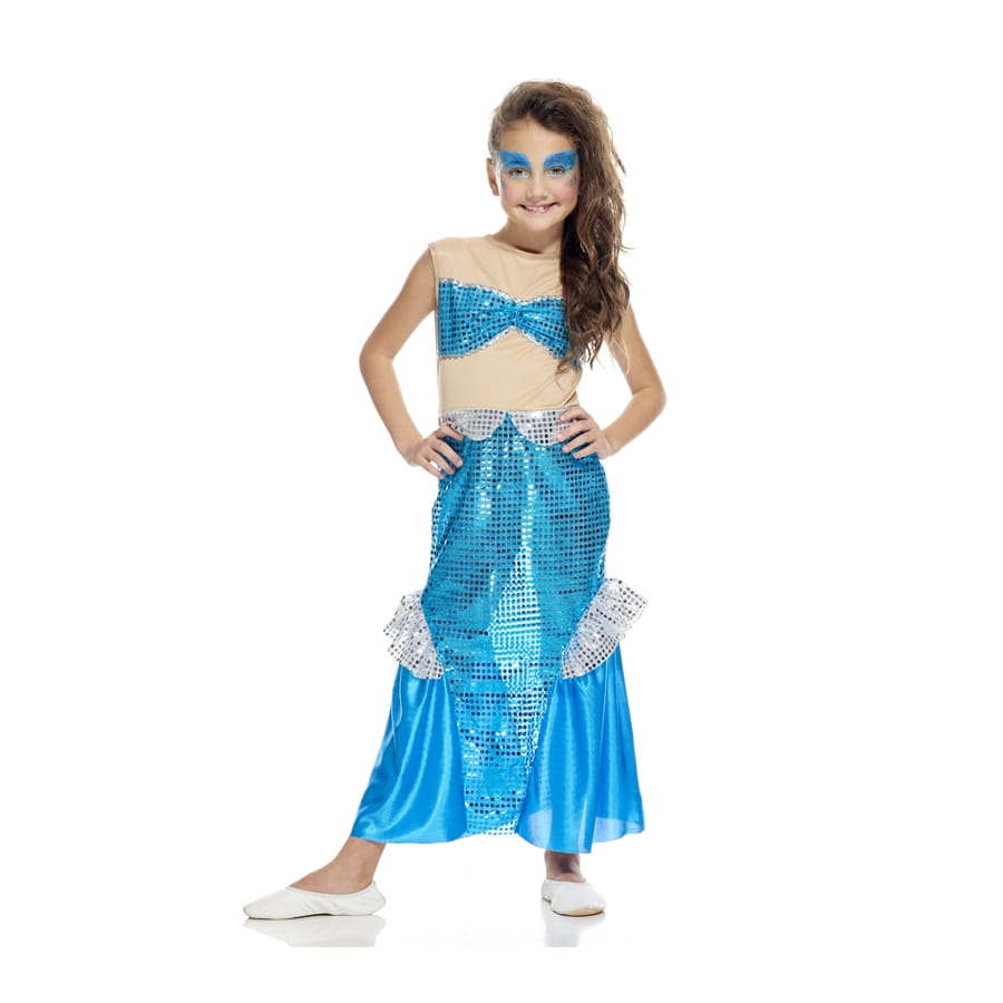 Si vous avez remarqué que votre petite fille aime Marina, la petite sirène, cette petite robe sera une idée de cadeau géniale pour son anniversaire. C'est un costume de sirène qu'elle pourra porter dans les fêtes déguisées, par exemple à thème contes de fée. Cette longue robe est bleue comme l'océan, et brillante, ayant l'air d'écailles de poisson, avec des petites nageoires au niveau des jambes, est disponible en tailles 116, 128, 140 et 152 cm. Il suffira que votre petite l'essaie et vous verrez une belle petite sirène vivante chez vous. Le rêve de votre petite fille, celui de devenir une petite sirène comme Marina, sera enfin réalisé. En plus, se déguiser en sirène n'est pas très commun pour un déguisement, ce n'est pas tout le monde qui y pense. Votre petite fille sera certainement très fière d'être la seule reine à porter ce costume à la fête.