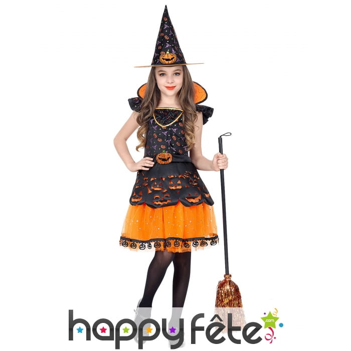 La robe de sorcière citrouille enfant avec chapeau est la parfaite tenue pour plonger votre enfant dans l'enchantement d'Halloween.