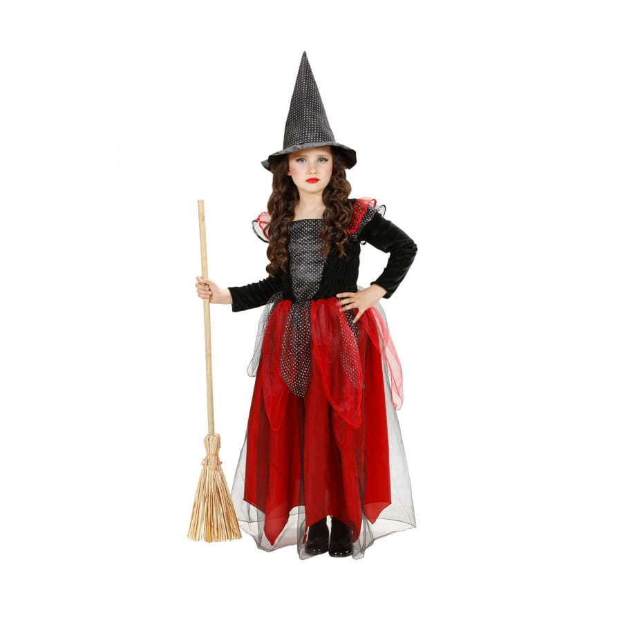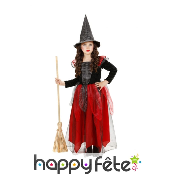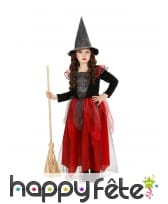 Préparez votre fille pour la prochaine chasse aux bonbons, avec la robe de sorcière pour enfant rouge et noir.