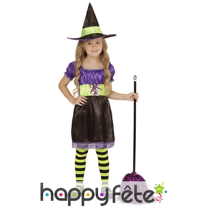 Craquez pour la robe de sorcière pour enfant, violet et rose.