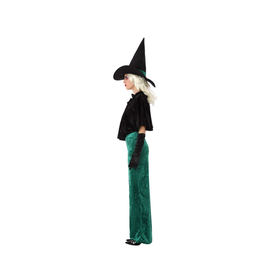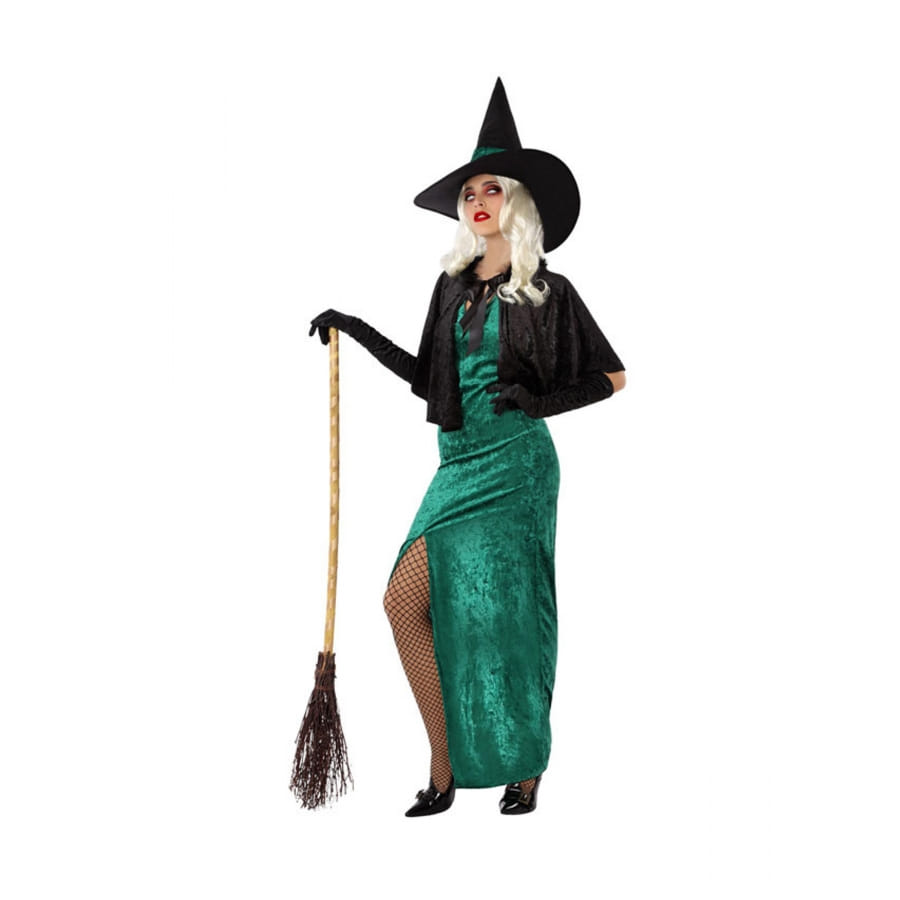 La robe de sorcière verte et échancrée pour femme est faite à partir d'un tissu effet velours.