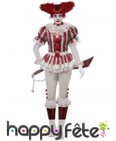 Celle-ci est rouge, fluide et laisse apparaître des bandes aux motifs dorés qui parcourent toute la longueur de la robe, mais aussi le tour des coudes et l'extrémité des manches.
