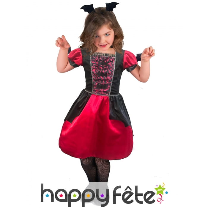 La robe de vampire noire et rouge pour enfant plongera votre fille à fond dans la prochaine chasse aux bonbons d'Halloween.