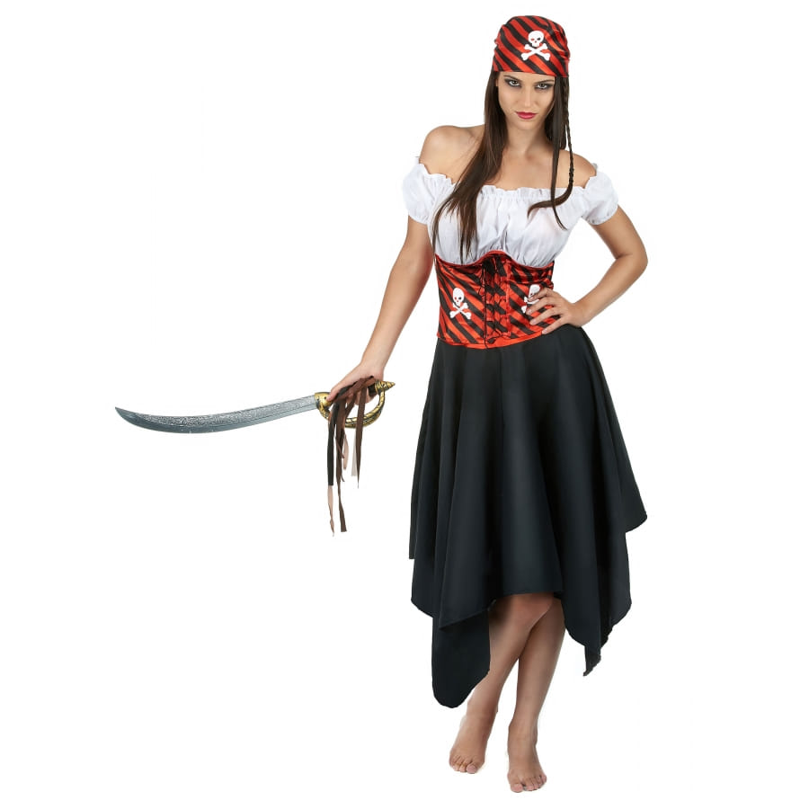 Pour le prochain Halloween, changez-vous en un brigand de mers, et vivez vos plus belles aventures, avec cet ensemble robe et bandana de femme pirate.