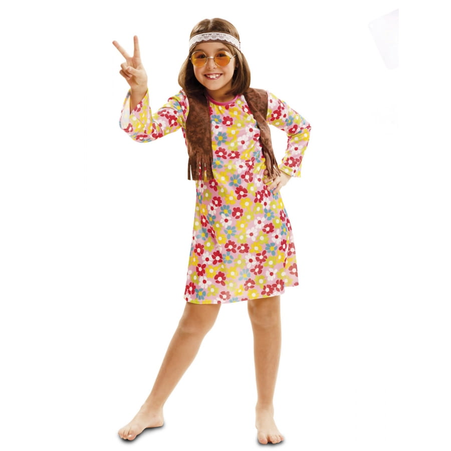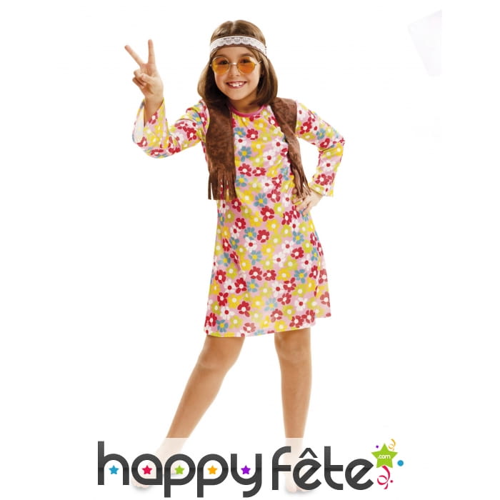Pour la prochaine soirée déguisée, habillez votre fille de la robe fleurie de petite hippie avec bandeau.