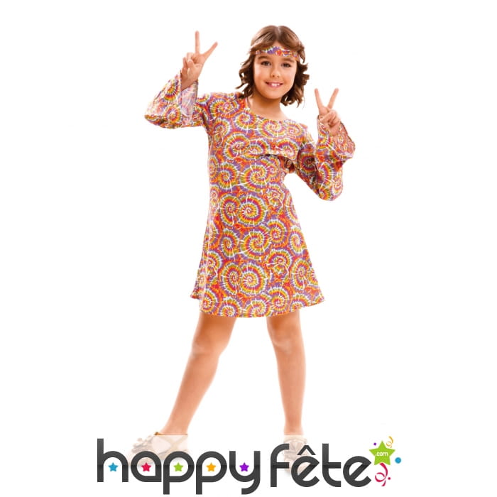 Petit voyage dans le temps pour redécouvrir la mode des années 60 grâce à cette Robe hippie motifs tie and dye pour enfant.