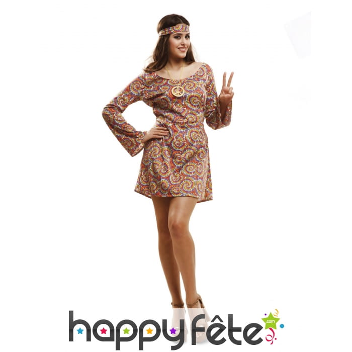 Optez pour style typique et original lors d'une soirée organisée sur le thème rétro, en arborant cette robe hippie pour femme avec motifs tie and dye.