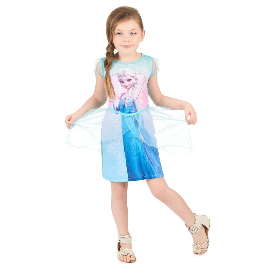 Nous vous proposons une robe imprimée Elsa sur le devant.