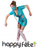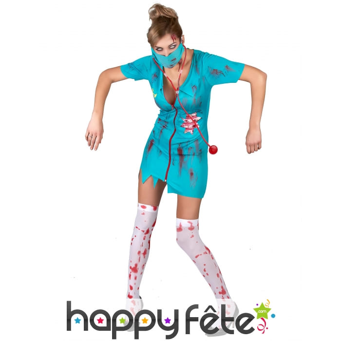 Il y a quelque chose de terrifiant dans l'hôpital abandonné d'à côté, et ce quelque chose... c'est vous ! Oui, vous avez bien entendu. Avec cette Robe Infirmière Zombie Turquoise, vous serez l'attraction principale de chaque soirée d'Halloween. Qui a dit qu'on ne pouvait pas être à la fois élégante et terrifiante ?