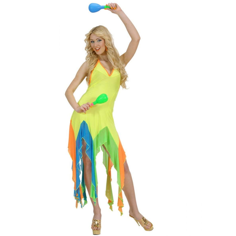 Ambiance caliente et toute en couleur garantie avec cette robe jaune fluo de danseuse brésilienne pour adulte.