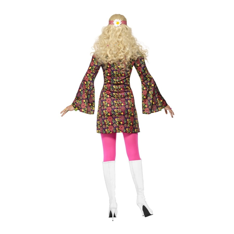 Déguisement de hippie composé d'une robe à manches larges et motifs multicolores. Elle est disponible en taille S, M ou L. Elle est élégante et donne un style baba cool funky à la fois. Il vous sera possible de choisir entre une taille S, M ou L au moment de votre commande.