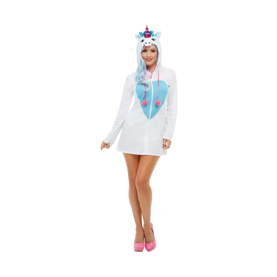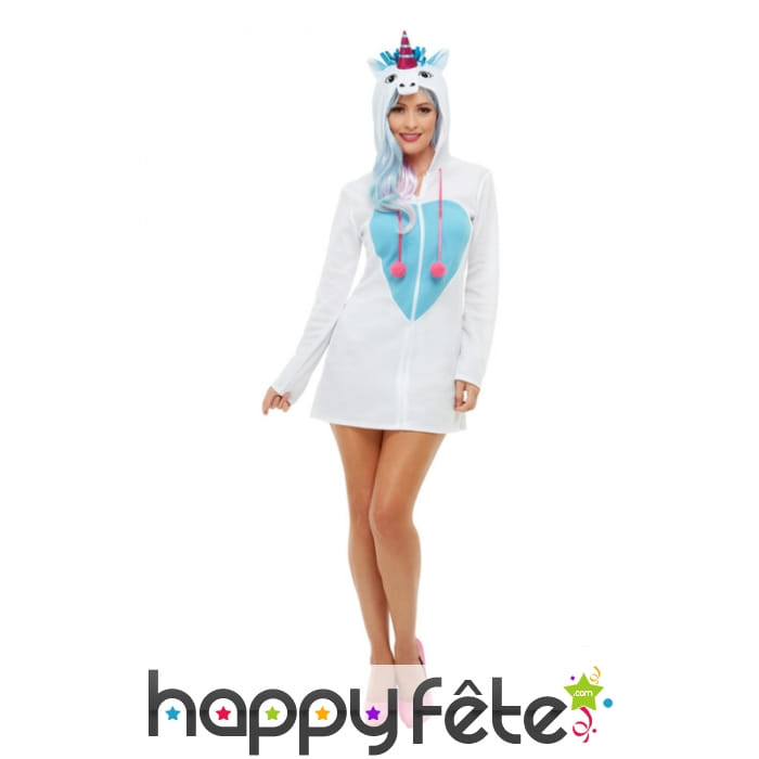 Cette Robe licorne blanche pour femme est très courte et ressemble à une veste à longues manches.