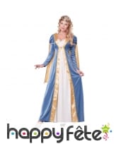 L'époque médiévale est révolue, mais son style vestimentaire reste toujours d'actualité. Mesdames, vous êtes conviées à jouer le jeu : faites comme si vous alliez assister à un grand bal au Moyen Age ! Devenez une princesse médiévale grâce à cette robe médiévale rouge grande taille. Cette sublime robe est de couleur rouge cramoisi. Elle est très longue avec un col légèrement dégagé. Ses manches sont également longues et de nature évasées. La tenue est associée à un magnifique bandeau orné d'une fausse pierre précieuse et de couleur assortie à la robe. Il se porte idéalement avec des cheveux lâchés comme sur la photo. Les talons hauts sont également indispensables pour peaufiner ce déguisement. Votre conte de fée peut commencer...